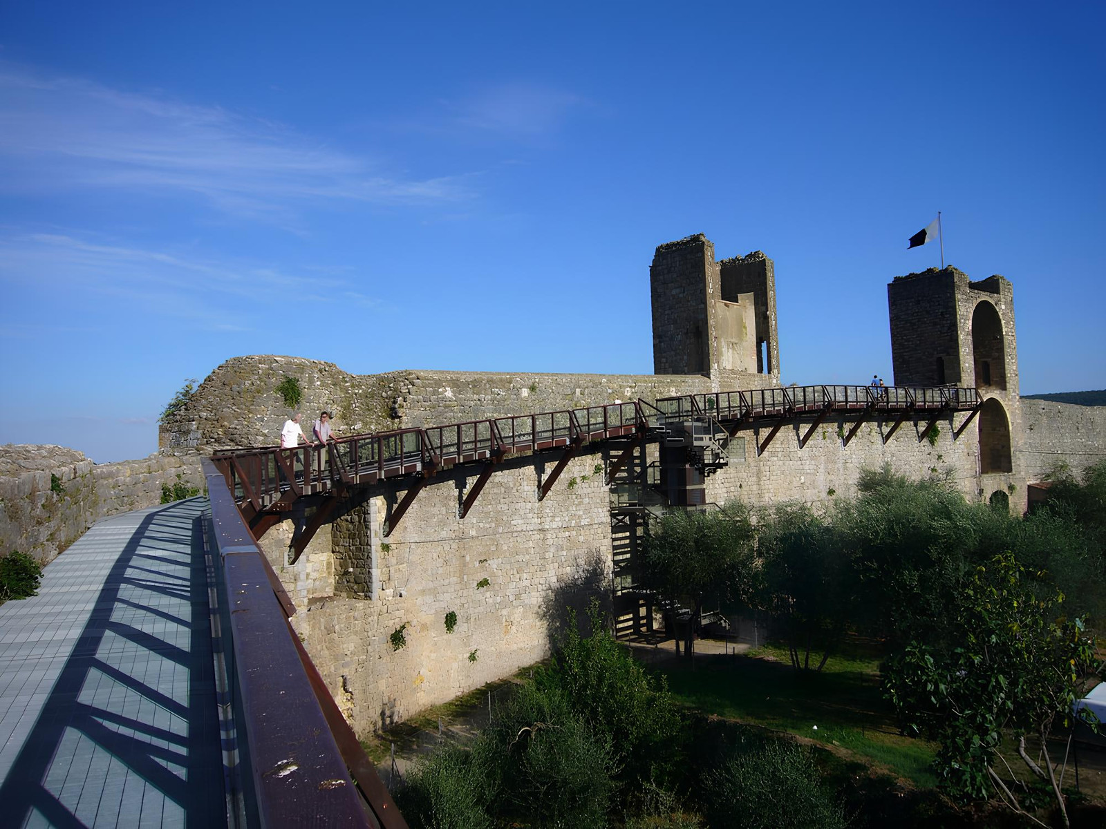 Alla sommità delle mura di Monteriggioni sono situati due camminamenti di ronda aperti al pubblico, dai quali è possibile ammirare il panorama verso l’esterno e verso l’interno del Castello.