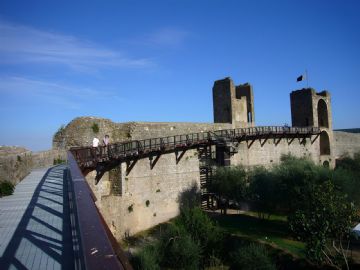 Alla sommità delle mura di Monteriggioni sono situati due camminamenti di ronda aperti al pubblico, dai quali è possibile ammirare il panorama verso l’esterno e verso l’interno del Castello.